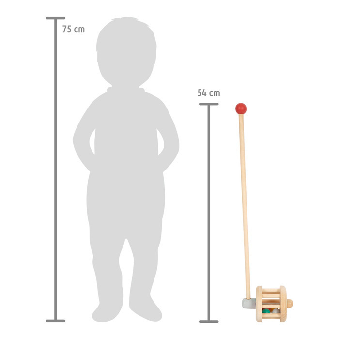 Tento dřevěný jezdík slouží také jako chrastítko a je bezpečným a odolným společníkem pro každé batole. Pestrobarevné kuličky po zatlačení na jezdíka divoce poskakují kolem dřevěného bubnu a vydávají zábavný zvuk. Vybízí začínající chodce, aby se znovu a znovu vydávali na objevné cesty napříč...