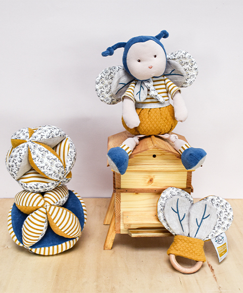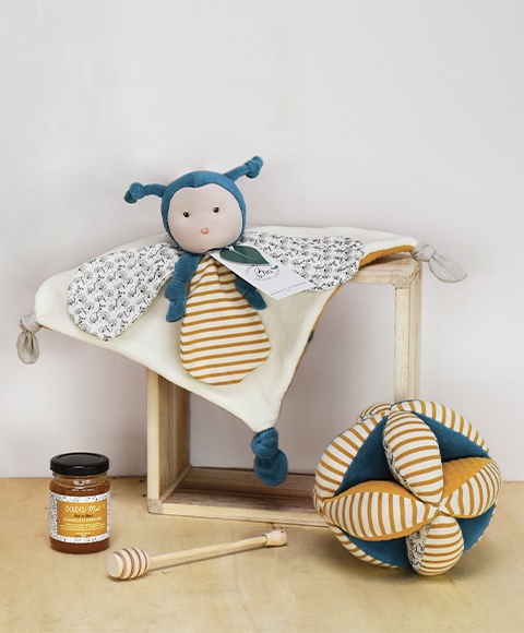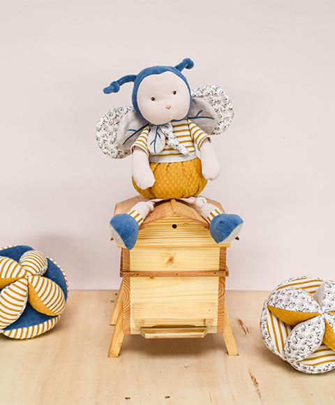 Doudou Textilní aktivní míč s chrastítkem včelka 15 cm