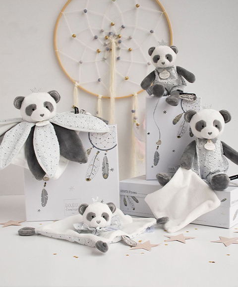 Doudou Dárková sada - plyšový muchláček panda 26 cm