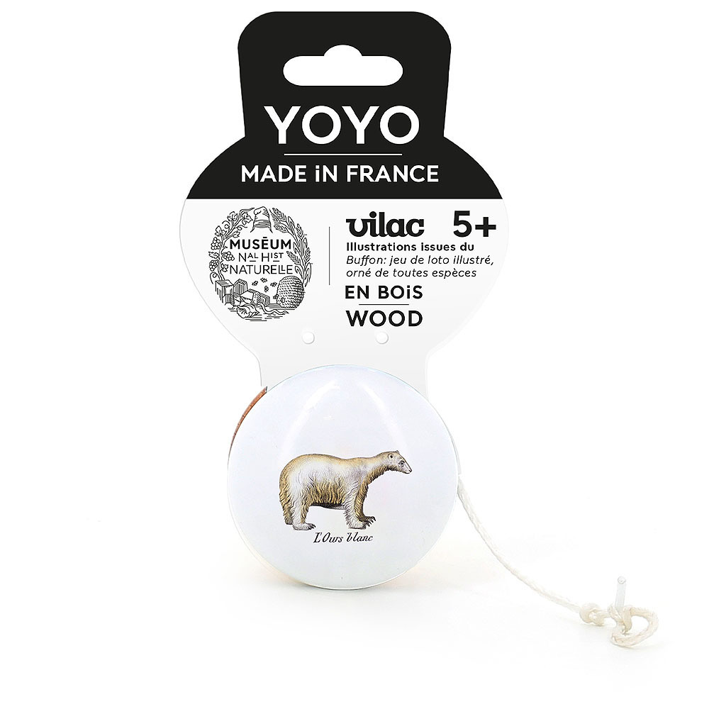 Jojo z lakovaného dřeva s ilustrací ledního medvěda. Vytvořeno ve spolupráci s národním přírodovědným muzeem v Paříži Museum national d’Histoire naturelle. Skvělý doplněk, dárek a památka k mnoha příležitostem. Vyrobeno ve Francii. Hlavní vlastnosti: podporuje