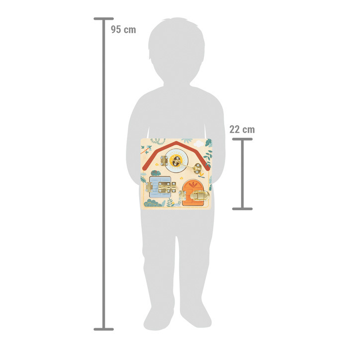 Zavřít, otevřít, objevit! Tato dřevěná motorická deska nabízí malým dětem různé možnosti hraní a učení v exotickém motivu „safari“. Má dvě okna a jedny dveře, které mají různé zámky. Po zdolání zámku a otevření odhalují roztomilá zvířátka. Skvělá Montessori hračka, která hravou formou procvičí...