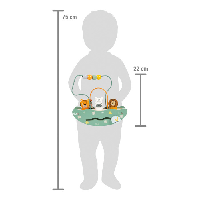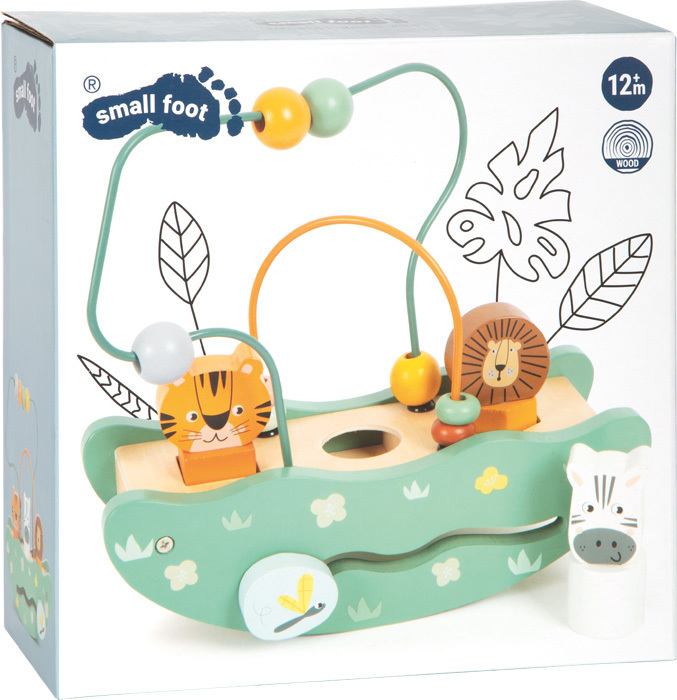 Objevujte, hrajte si a učte se – toto vše nabízí tato všestranná motorická hračka v safari vzhledu. Je vyrobená z robustního dřeva, která kombinuje dvě motorické smyčky spojené s houpačkou. Smyčky jsou vybaveny čtyřmi korálky ve dvou různých velikostech. Malí