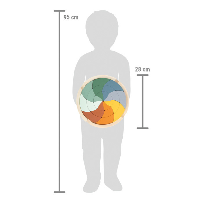 Toto barevné puzzle z 24 dílků v moderních barvách nabízí volnou hru a učení v souladu s výukovou metodou Montessori. Je to hravá výzva k hádankám, třídění, skládání a vytváření vzorů. Povzbuzuje děti, aby si hrály kreativně, zatímco trénuje jejich představivost a