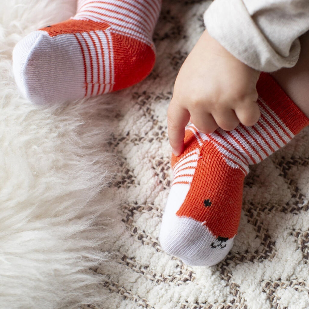 Udržujte nožky svého dítka v teple s těmito dětskými ponožkami od Petit Collage. Ponožky jsou vyrobeny z organické bio bavlny. Tento pár pruhovaných ponožek má milou tvář malého liščího miminka. Hlavní vlastnosti: design liškyvyrobeno z organické bavlny