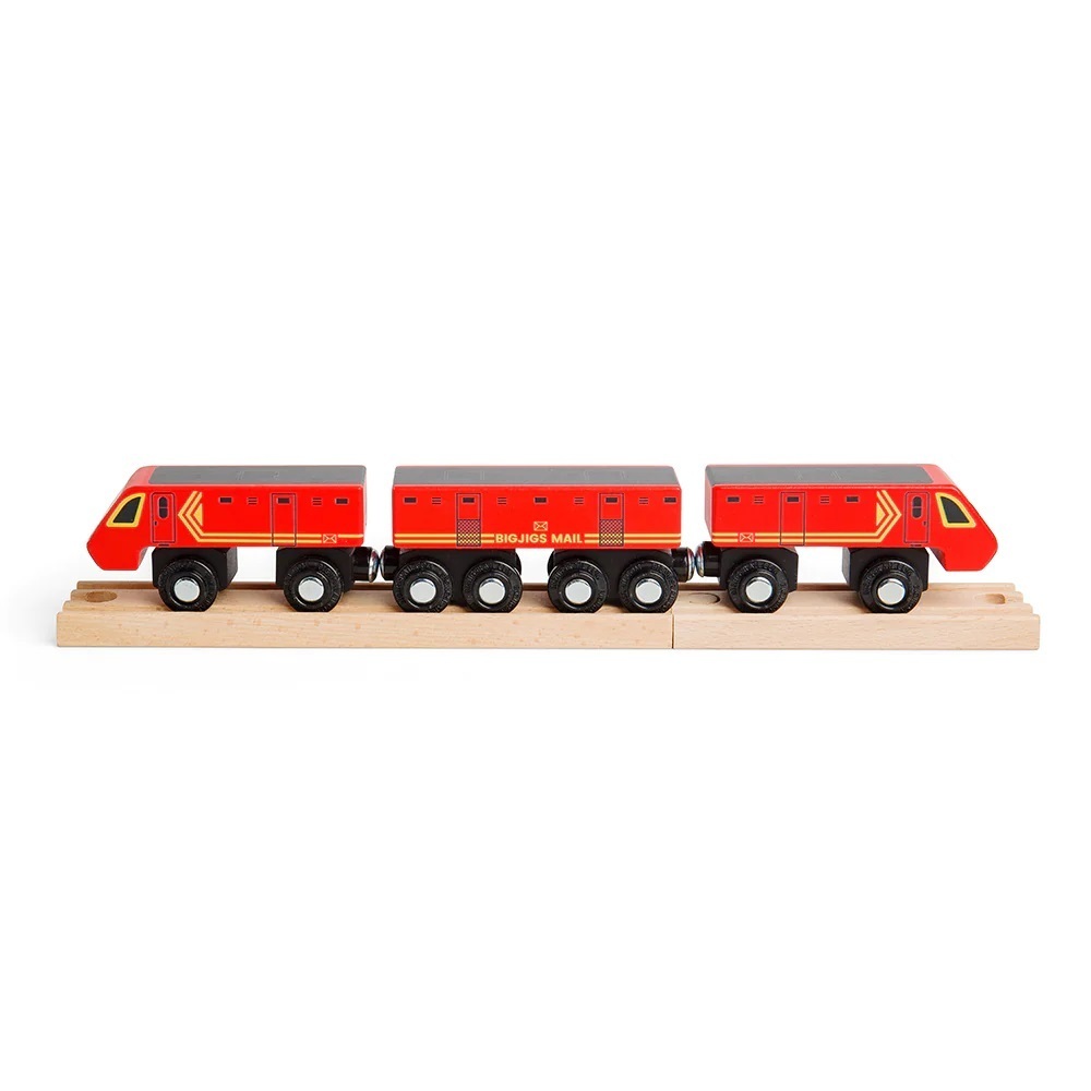 Tento dřevěný vláček přináší dětem hodiny kreativního a dobrodružného hraní. Dodává se se třemi červenými vagóny se žlutými pruhy a magnetickými spojkami, které spojují vagóny dohromady. Obsahuje také dva kusy dřevěných kolejí. Tématické vláčky jsou vynikající