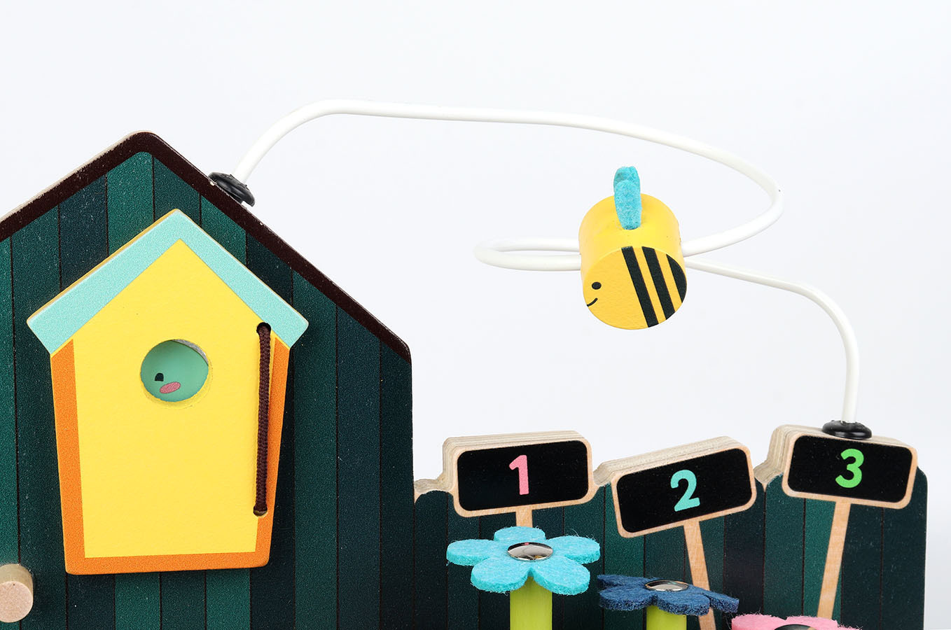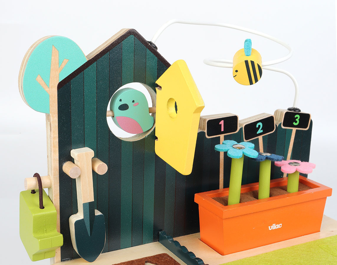 k sklizni, včelou, která cestuje po kovovém drátě, Vaše dítě během hraní zažije spoustu zábavy. Když použije lopatku, králíček vyleze ze svého doupěte. Zahradní multi-aktivitní hračka perfektně zapadá do naší řady hraček inspirovaných přírodou, jako je zahrada nebo