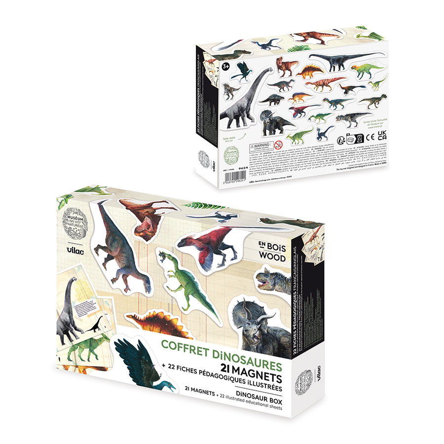vysvětlujícím listům pro každého dinosaura se vaše děti učí, zatímco se baví. Hlavní vlastnosti: obsahuje 21 ks magnetek a 21 listůbaleno v dřevěné krabičcevytvořeno ve spolupráci s Ronanem Allainem (renomovaný paleontolog a specialista Národního muzea přírodní