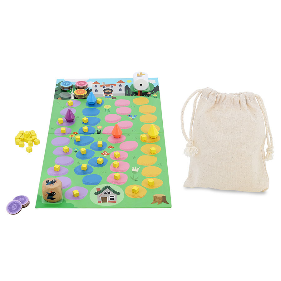 pokladem jako první díky kouzelným botám! Nechejte se unést nádhernými ilustracemi Ingely P. Arrhenius. Tato hra je doporučena pro děti od 5 let. Herní prvky jsou uloženy v malém bavlněném sáčku. Obsah hry: 1 kartonová hrací deska4 dřevění pěšáci2 dřevěné kostky40