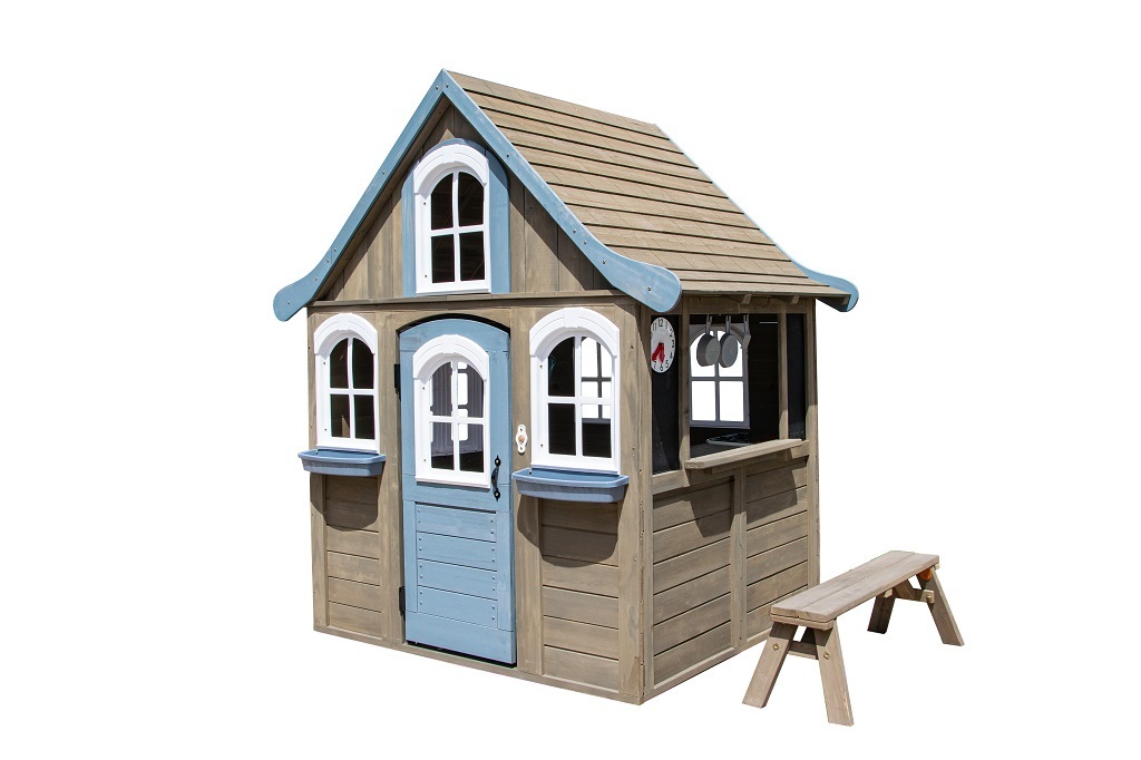 na květiny přijdou jistě vhod. Útulná kuchyňka v podobě dřezu, vařiče a servírovacího pultu dává možnost malým gurmánům ukázat své kulinářské dovednosti. Díky lavičce se o své pochoutky můžete podělit se svými přáteli. Na co čekáte? Zazvoňte na funkční zvonek a