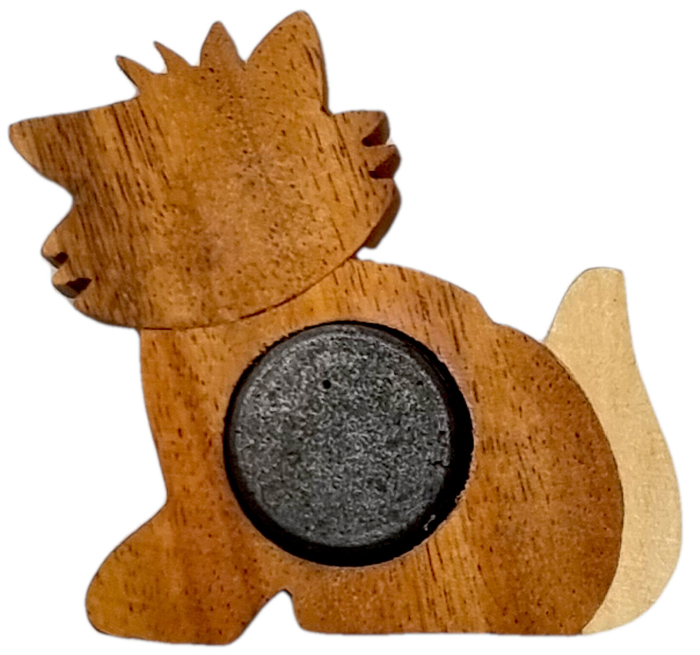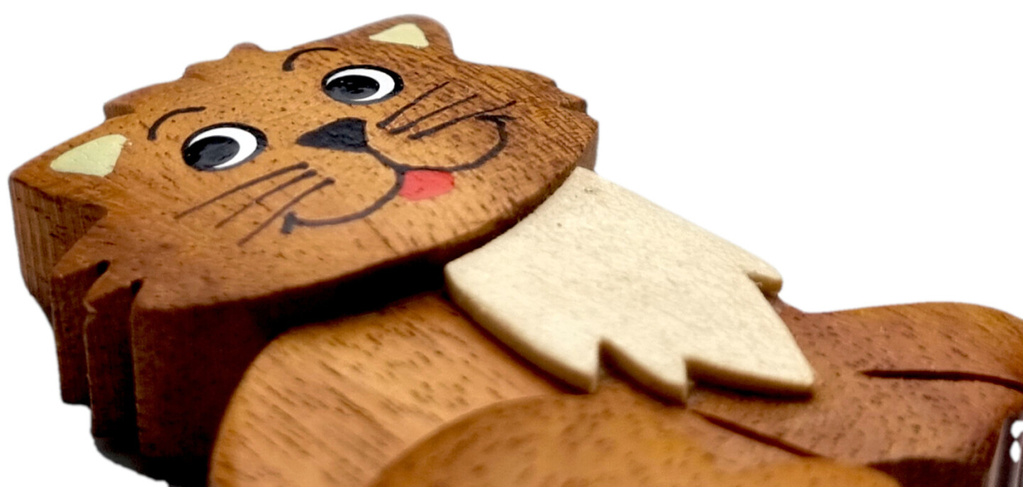 Dřevěný dekorativní magnet ve zvířecím motivu rozzáří každou lednici i tabuli. Roztomilé zvířátko jistě každému vykouzlí úsměv na tváři.Produkt je vyráběn ručně až z pěti druhů dřeva, které je přirozeně různobarevné – žlutý chlebovník různolistý, světlehnědý tamarind manilský, tmavěhnědá kasie...
