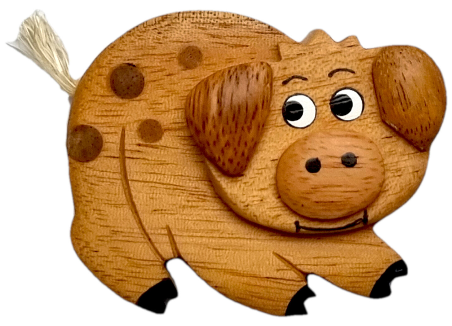 Dřevěný dekorativní magnet ve zvířecím motivu rozzáří každou lednici i tabuli. Roztomilé zvířátko jistě každému vykouzlí úsměv na tváři.Produkt je vyráběn ručně až z pěti druhů dřeva, které je přirozeně různobarevné – žlutý chlebovník různolistý, světlehnědý tamarind manilský, tmavěhnědá kasie...