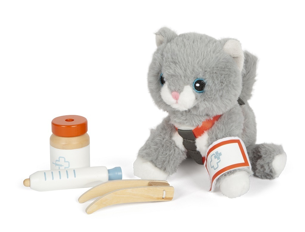 veterinární situace. Krmení, péče, hraní, léčení – tato plyšová kočka s pečovatelskou sadou nabízí spoustu různých herních scénářů a povzbuzuje k aktivnímu hraní rolí.Hlavní vlastnosti: realistické zvířátkoplyšová hračka s postrojemsada obsahuje plyšovou