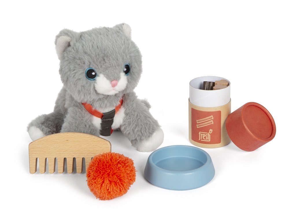 Plyšová kamarádka, která má v sadě vše, co potřebujete, abyste o ní mohli pečovat. Nastěhujte si koťátko do svého pokojíčku anebo si ho vezměte s sebou na cesty. Díky praktické přepravní tašce už svého mazlíčka nikdy nebudete chtít nechat doma. Sada obsahuje