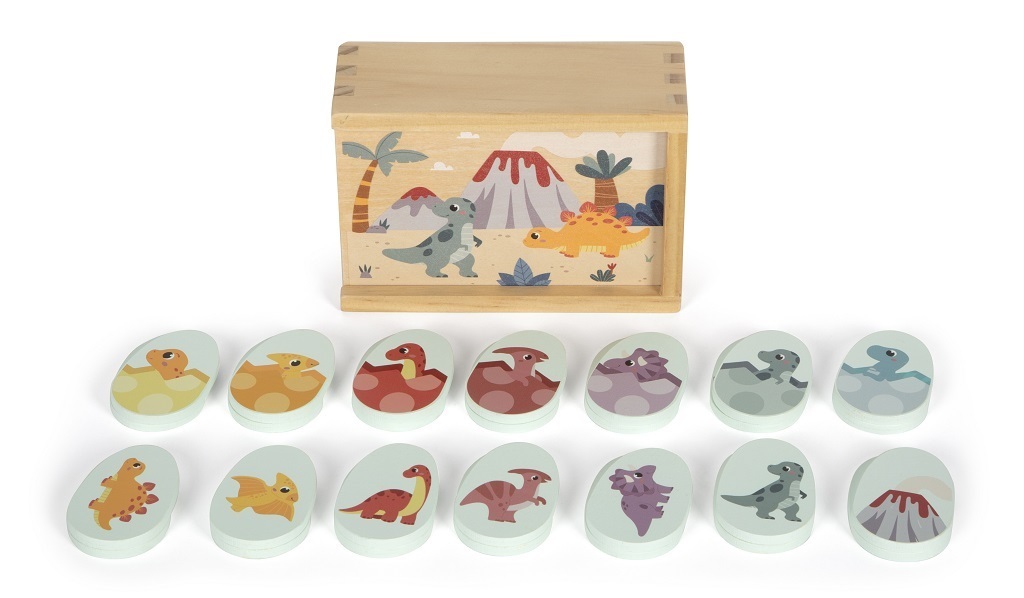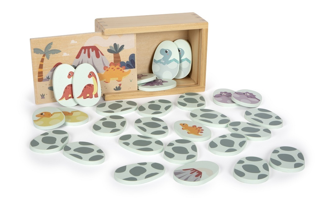 Tato klasická hra v kompaktním formátu jistě přinese dlouhotrvající herní zábavu fanouškům dinosaurů všech věkových kategorií. Ponořte se do dobrodružného světa prehistorické éry. Pexeso v roztomilém motivu dinosauřích vajec je společenská hra pro celou rodinu.