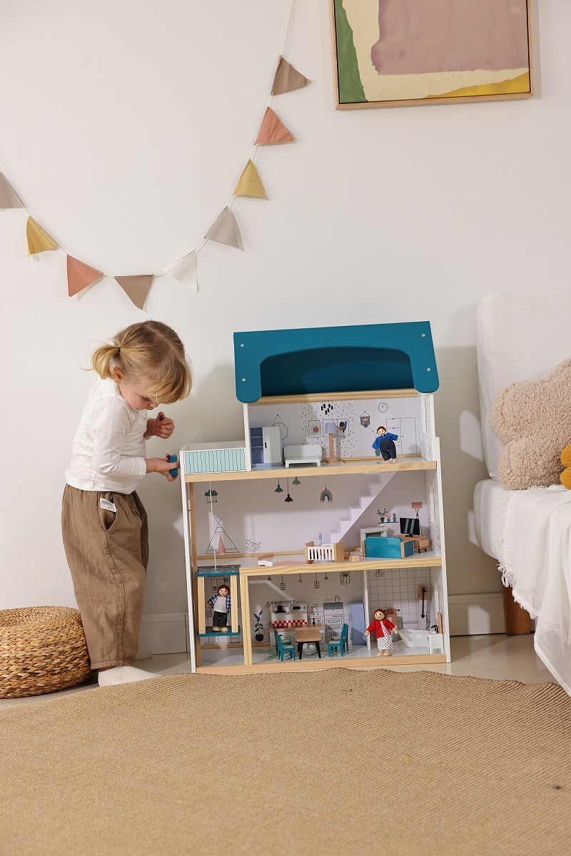 Rozměry balení: 66,5x44,5x10 cm Rozměry domečku: 61,5x80x29,5 cm Věk: 3+ Materiál: FSC®