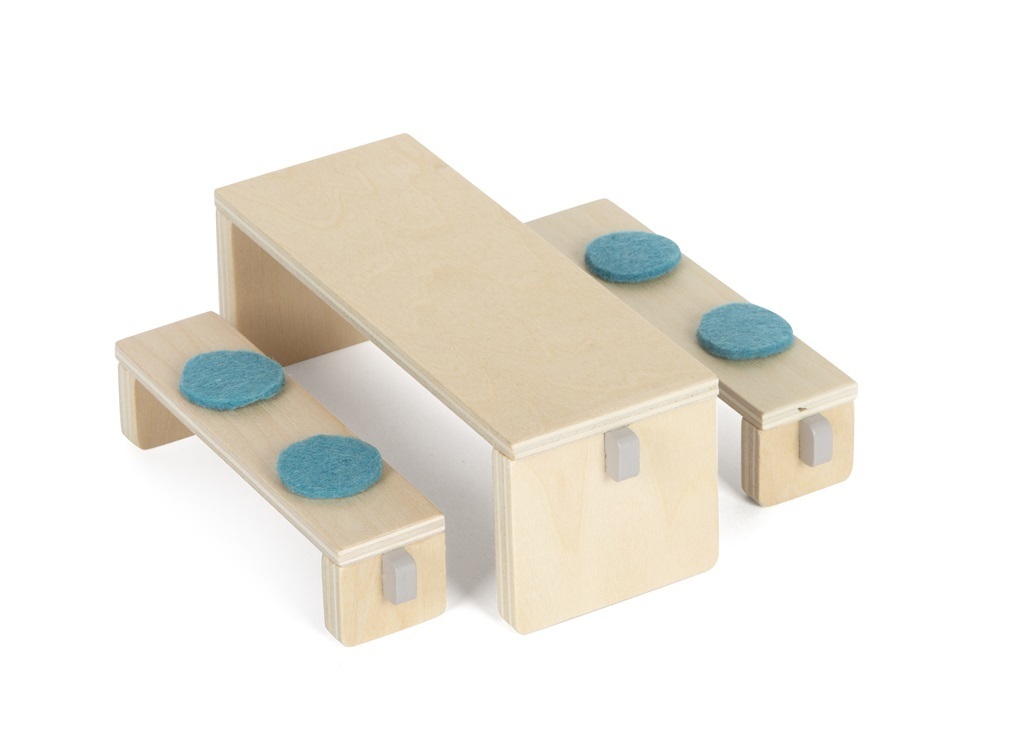 Tato detailně propracovaná kuchyň bude krásným doplňkem každého domečku pro panenky. Skládá se z vysoké kuchyňské skříně, samostatně stojícího kuchyňského ostrůvku, 2 taburetů a stolu se 2 lavicemi se sedáky, které se dají sundat. Součástí kuchyňské skříně je kombinovaná lednice s mrazničkou a...