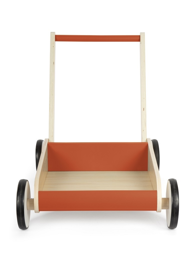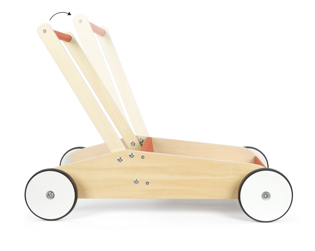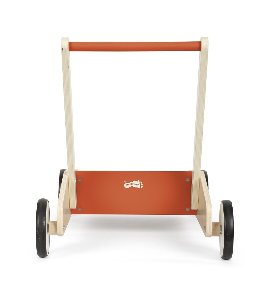 Ideální společník pro procházky i hraní. Toto dětské chodítko není jen hračka, ale také perfektní společník pro první krůčky malých dobrodruhů. Díky kombinaci přírodního dřeva a měděně červené barvě je také opravdovým poutačem pro oči v každé školce či