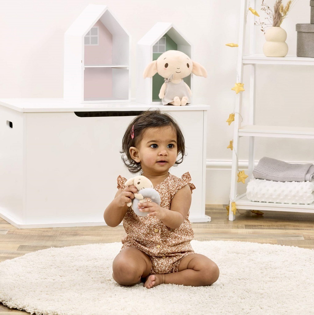 Objevte kouzelný svět Harryho Pottera s chrastítkem v motivu jeho malého přítele Dobbyho. Chrastítko je vyrobeno z velmi kvalitního plyše a má perfektní velikost pro malé ručičky. Chrastítko se skřítkem Dobbym vydává jemný chrastící zvuk, který upoutá pozornost každého dítěte. Podporuje raný...