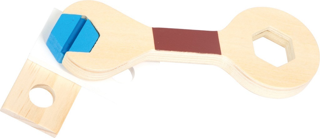 Rozměry opasku na nářadí: 32x3x15 cm Rozměry kladiva: 8x3x15 cm Věk: 3+ Materiál: dřevo, látka, kov