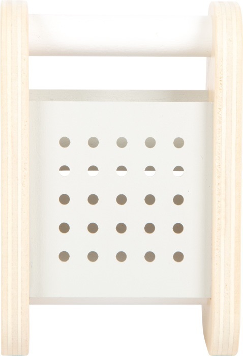 Rozměry mísy: 15x15x8 cm Věk: 2+ Materiál: dřevo, plast, plsť, guma