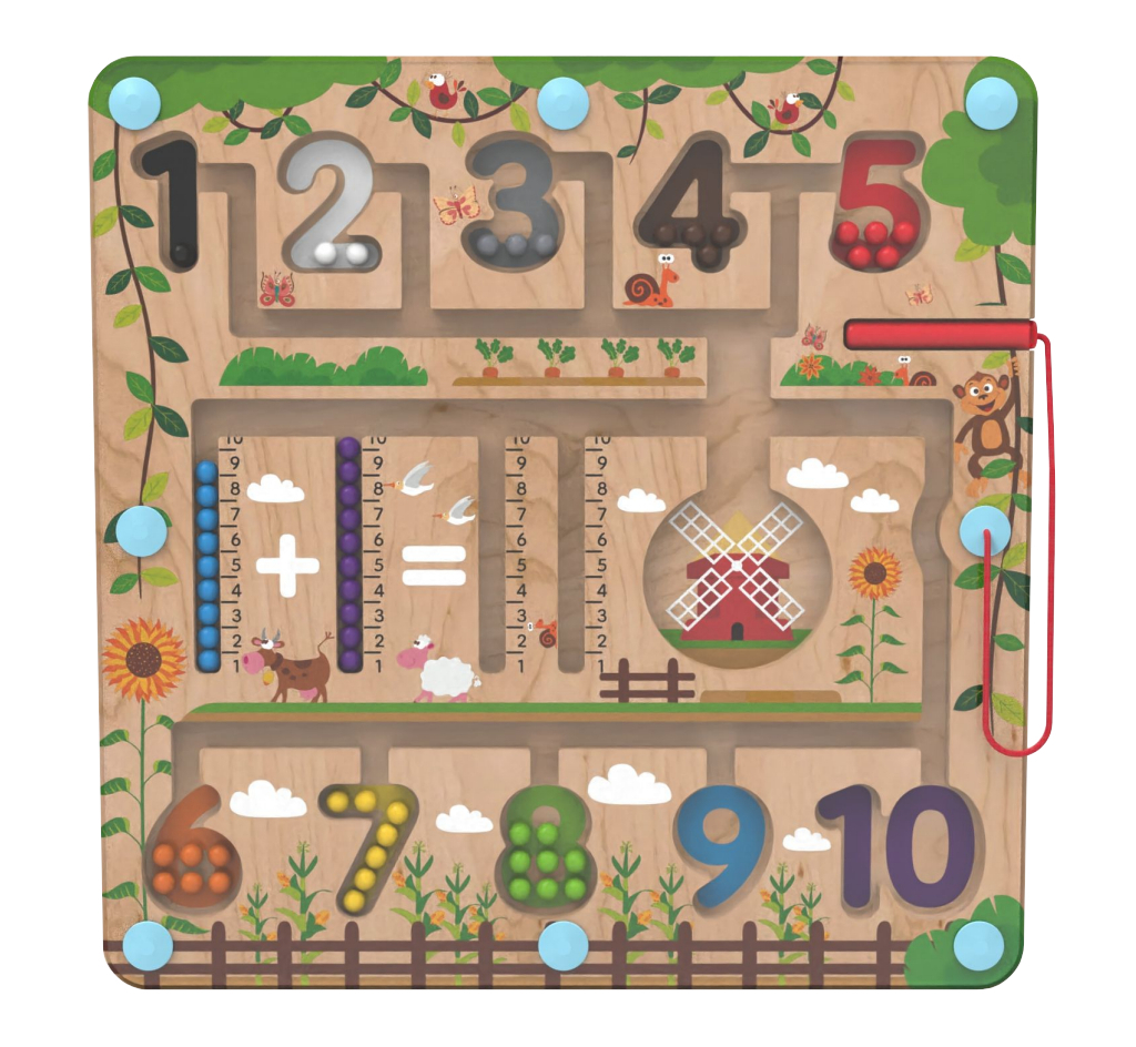 Vydejte se na cestu přírodou s barevnými kuličkami. Provedete úspěšně různobarevné kuličky všemi zákoutími? Umístíte všechny do mlýna? Vejdou se tam? Nebo pomocí čísel na metru vytvoříte a vypočítáte příklad? K vedení kuliček se při hře využívá magnetické