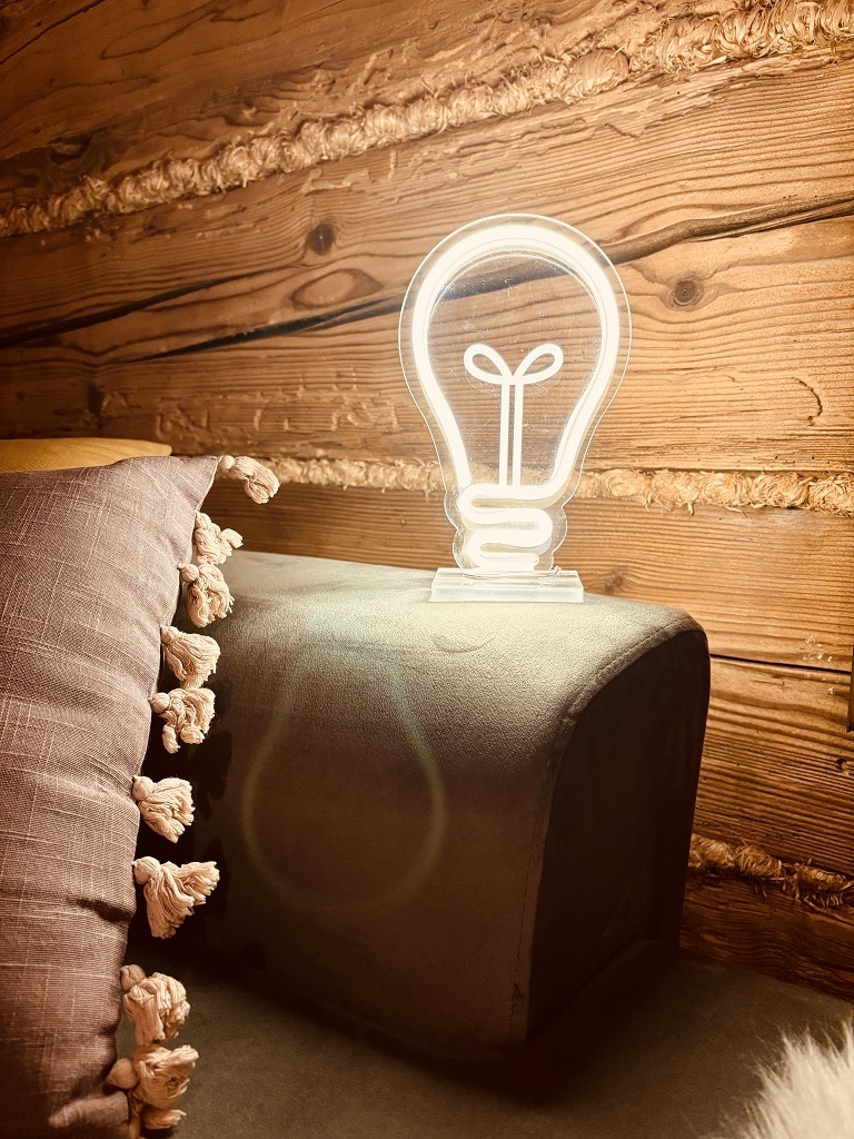 pokojíček, obývací pokoj, ložnici, kancelář, restauraci nebo bar. Tyto lampičky přinášejí úžasný efekt barevné záře, který okouzlí na první pohled. Jejich jemné, náladové světlo přináší do prostoru nezapomenutelný, vizuální zážitek. LED NEONOVÉ lampičky se