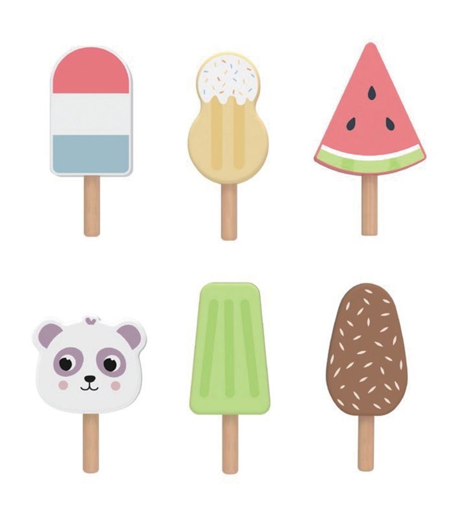 To je ale horko! Což tahle dát si něco studeného? Vyberte si ze šesti různých nanuků. Je libo čokoládový, vanilkový nebo snad melounový? Sada nanuků v praktickém stojánku se stane nepostradatelným doplňkem každé kuchyňky. Hraní rolí rozvíjí komunikační dovednosti