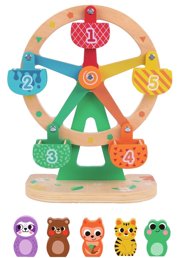 Užijte si spoustu zábavy na pouti! Které zvířátko se bude točit jako první? Lenochod, medvídek, veverka, tygřík nebo žabka? Tento kolotoč je nejen zábavný, ale naučí děti počítat od 1 do 5, rozpoznávat barvy, pojmenovat zvířátka. Je vyroben z vysoce kvalitního dřeva s