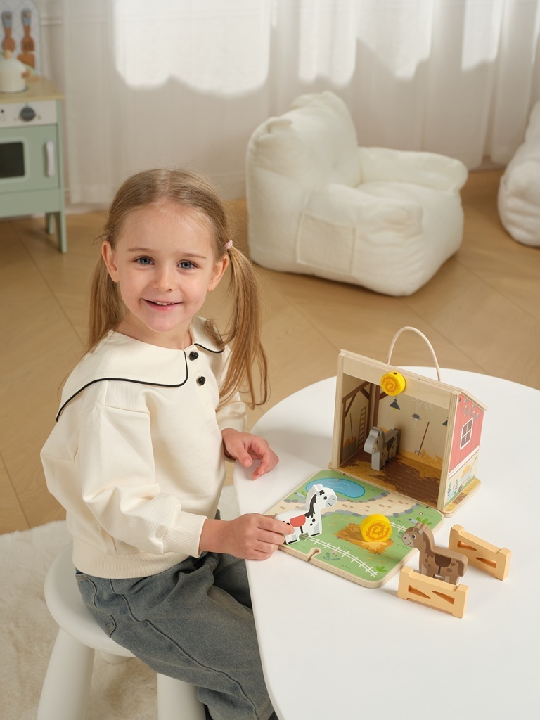 vnitřního prostoru si děti uklidí všechny figurky a díky praktickému uchu si mohou svou oblíbenou hračku vzít vždy s sebou. Hračka inspiruje k vyprávění příběhů a zlepšuje komunikační dovednosti. Díky kvalitnímu zpracování a kombinaci zářivých barev s barvou