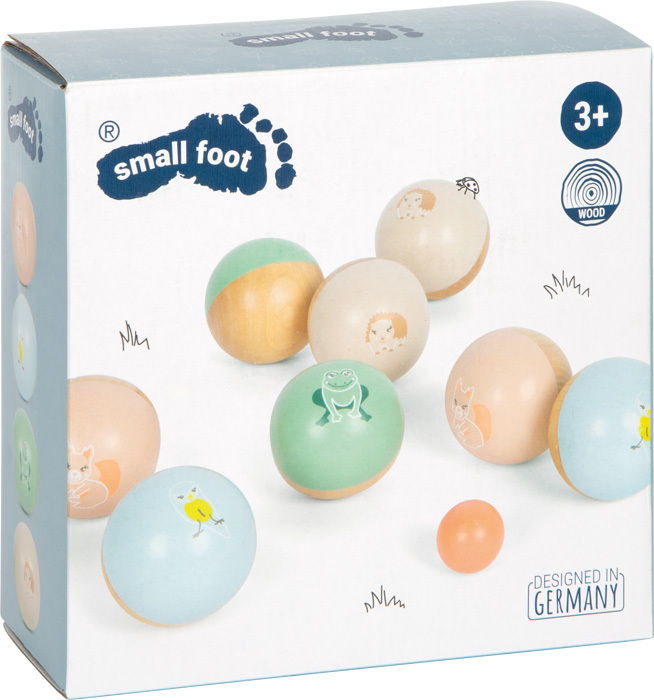 Rozměry velké koule: Ø 6 cm cm Rozměry malé koule: Ø 3 cm Věk: 3+ Materiál: dřevo, látka