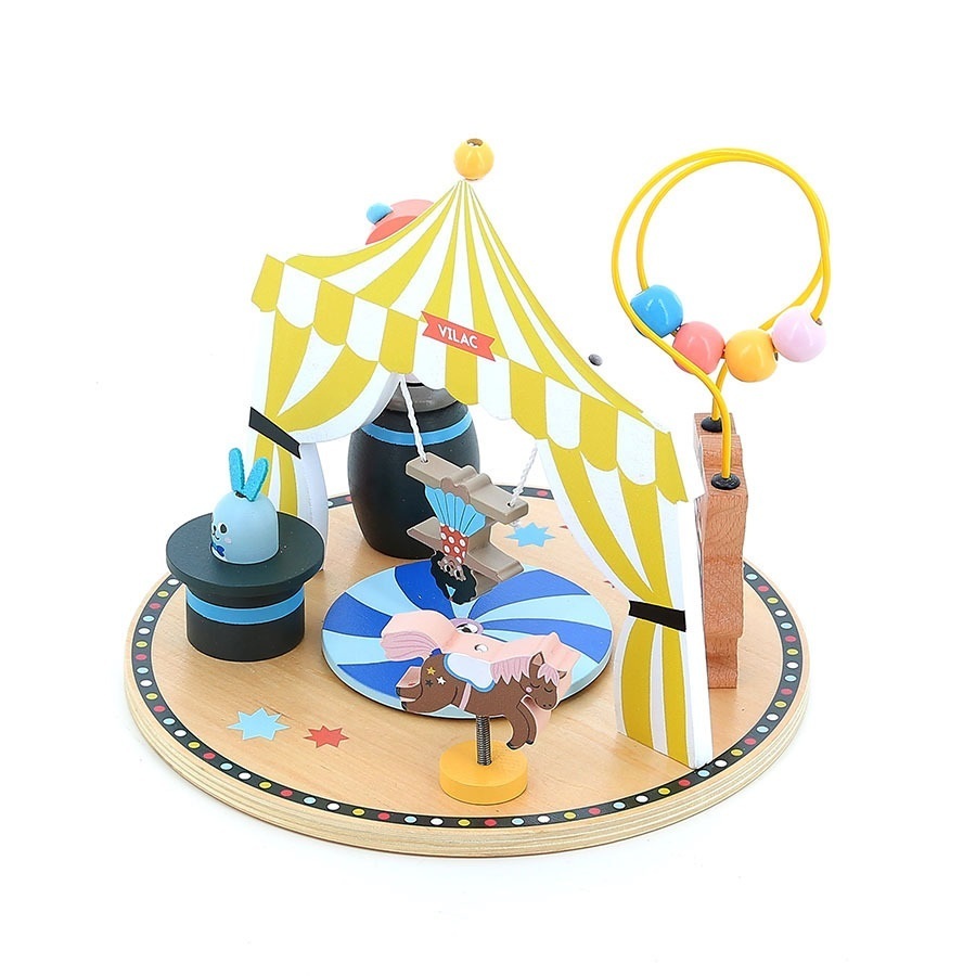 Materiál: dřevo, kov Obsahuje: 1 dřevěná cirkusová základna s 6 zabudovanými aktivitami Design Michelle Carlslund