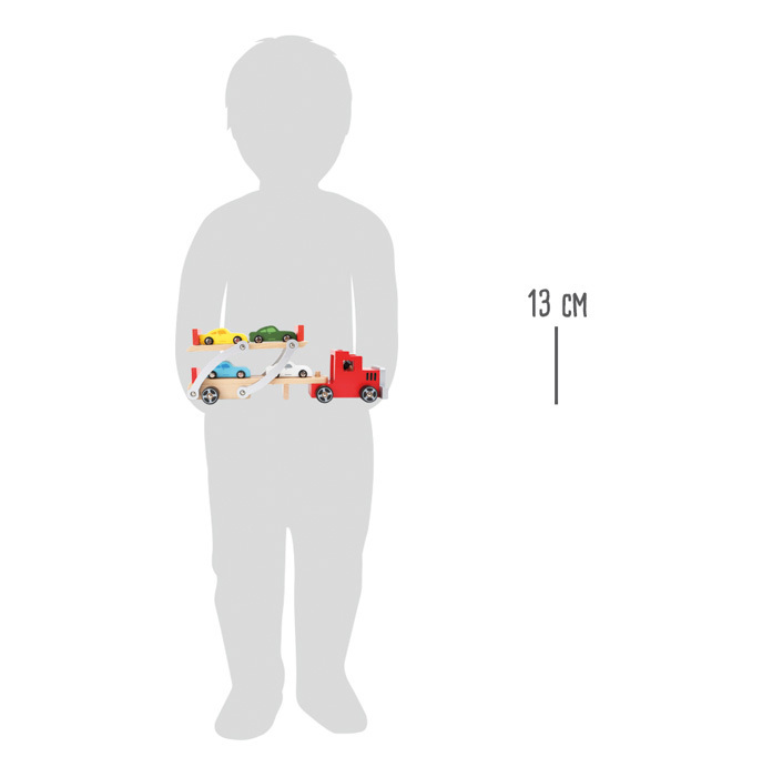 Pozor, zde se nakládají břemena! Chcete-li převézt nové modely aut z místa A na místo B, budete určitě potřebovat tento auto-přepravník. Naložit lze čtyři auta. Dřevěná auta mohou pohodlně vyjet na nákladní rampu. Zvednutá plocha opatřena závorou zabrání nechtěnému couvnutí aut. Včetně čtyř...