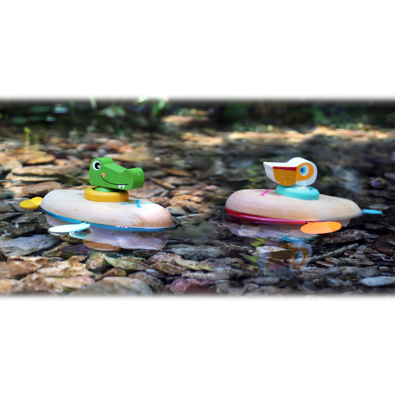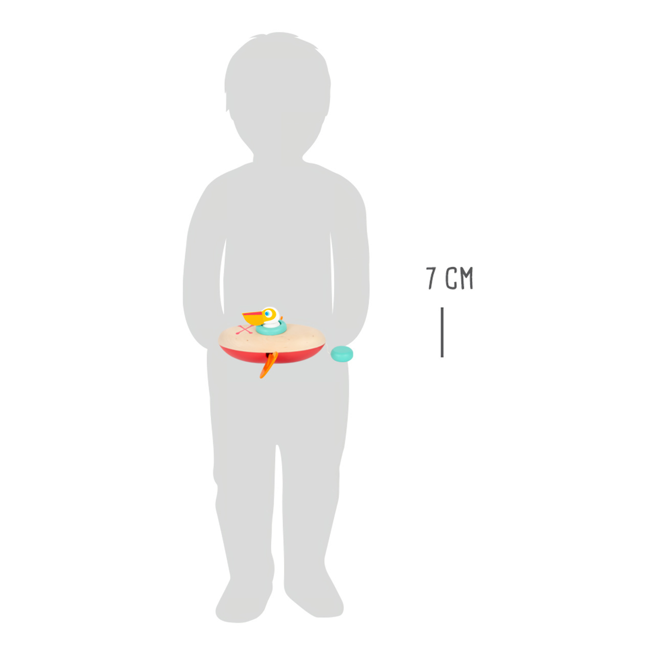 Malý pelikán dostal zelenou a může vyjet na plavbu. Jeho kánoe je vyrobená ze dřeva a plastu, po vodě dokáže plavat úplně sám – má natahovací mechanismus. S touto hračkou si děti užijí ve vodě mnoho zábavy. Vodní hračky vyrobené ze dřeva jsou ekologičtější alternativou plastových a gumových...