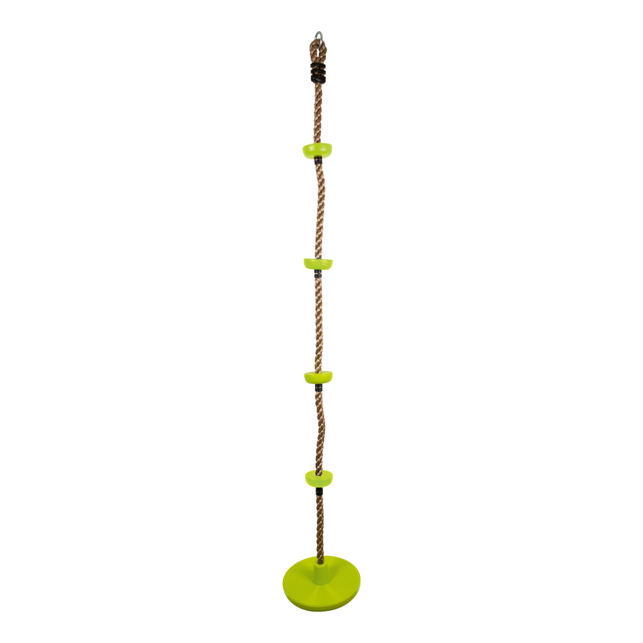 Toto multifunkční šplhací lano je vybaveno nášlapnými body, které jsou vyrobeny z robustního plastu. Čtyři pestře zelené body a úplně dole větší disk, na kterém se děti mohou houpat. Nášlapné body a disk mají žebrování, aby bylo hraní bezpečnější. V balení také oko, za které můžete lano zavěsit....