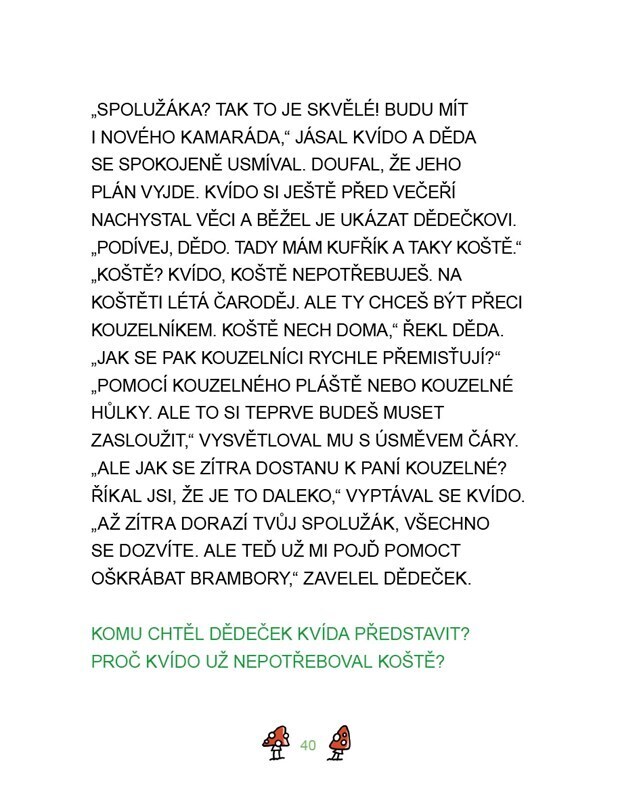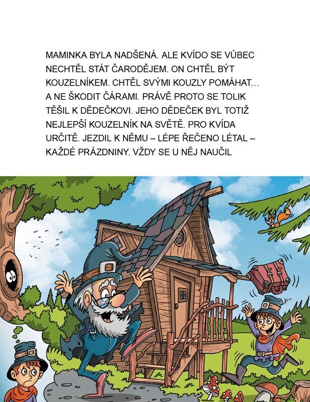 Rodiče zapsali Kvída do prázdninové školy pro čaroděje, kde se má učit, jak škodit lidem. Kvído však nechce být čaroděj, ale kouzelník jako jeho dědeček, a kouzly pomáhat. Stane se z něj čaroděj, nebo kouzelník? Vyprávění doplněné krásnými ilustracemi je přizpůsobeno začínajícím čtenářům, kteří...