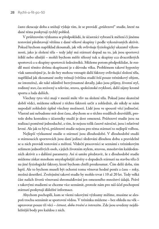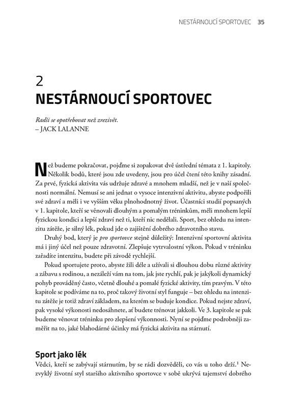 Kniha je určena všem, kdo chce vzdorovat stárnutí a zůstat rychlí i v pozdějším věku. Slavný trenér vychází z nejnovějších výzkumů stárnutí a sportovní výkonnosti a ukazuje, jak na to, abychom podávali nejlepší výkony a zůstali zdraví a výkonní i po padesátce.