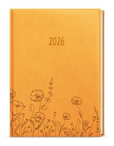 Denní diář v okrové barvě je vyrobený z jemné hladké vivelly s efektní ražbou s motivem Květin. Trendy a praktický doplněk, diář má velký prostor pro poznámky a plánování.