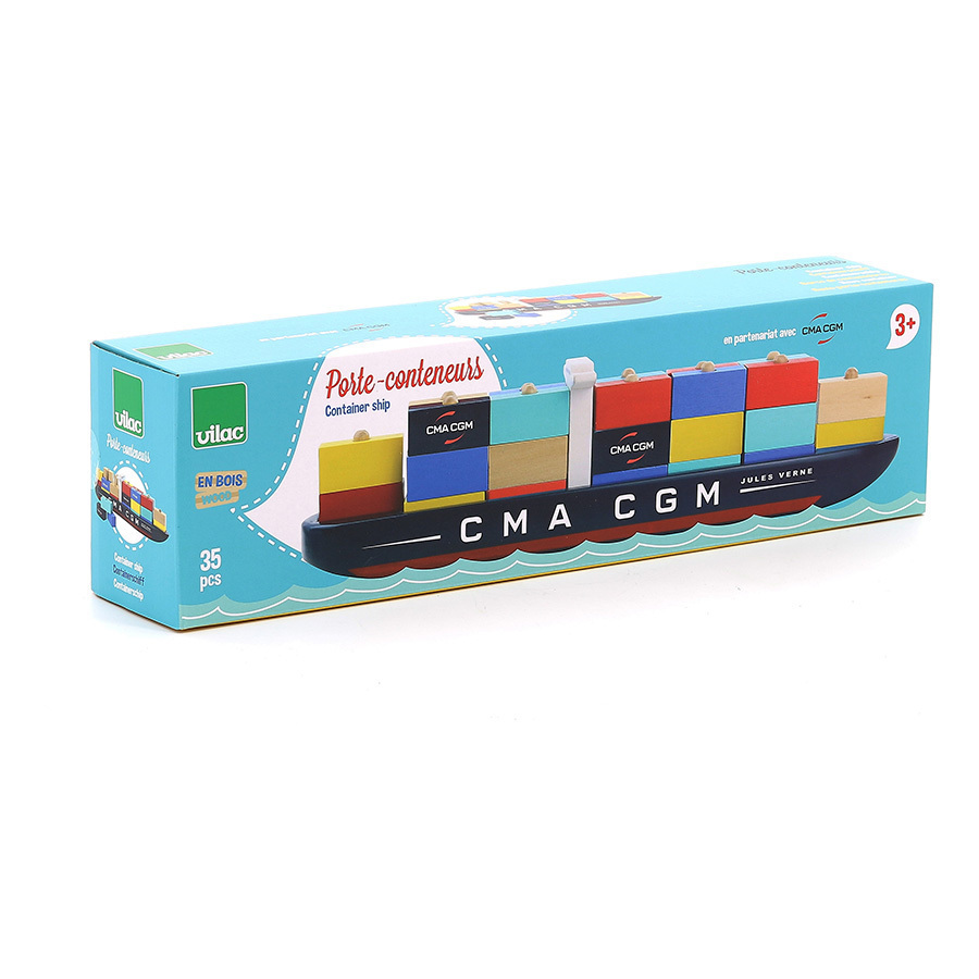 Celodřevěná kontejnerová loď Jules Verne CMA CGM. Naložte loď kontejnery a připravte ji k vyplutí. Hračka je vhodná i jako dekorace. Obsahuje 35 dílků. Hlavní vlastnosti: obsahuje 35 dílkůprocvičuje jemnou motoriku dětívhodná i jako dekorace