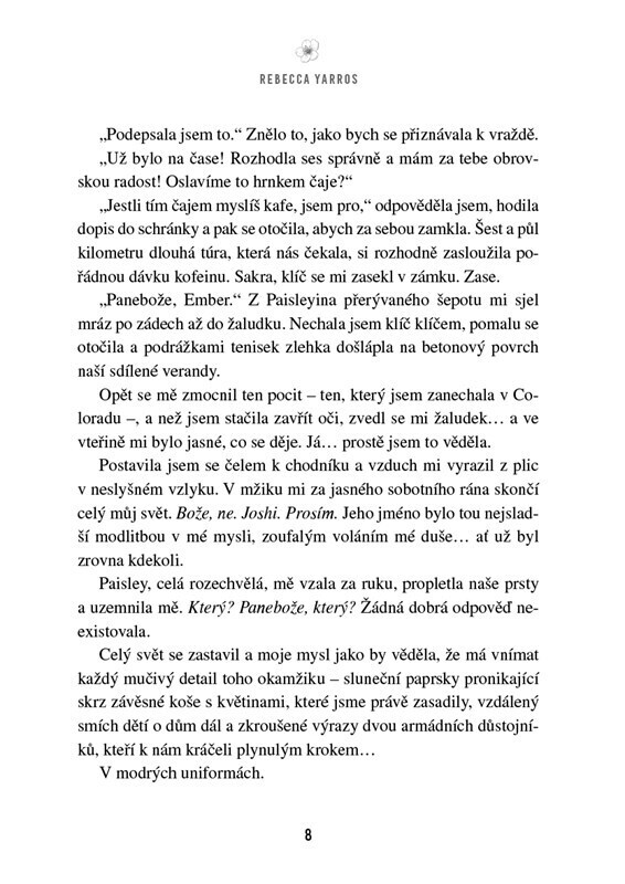 Josh Walker rád balancuje na hraně a je snem každé dívky. Oči má však jen pro Ember Howardovou. Společně ustáli smrt jejího otce, armádní leteckou školu i vztah na dálku. Teď před ně ale život staví novou výzvu – Josh míří do Afghánistánu. Do země, která ho už jednou málem zabila. Ani jejich...