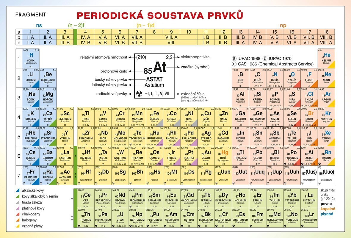 Periodická tabulka prvků bude vaším nepostradatelným pomocníkem nejen v hodinách chemie. Díky laminovaným deskám se tabulka nepoškodí a zůstane dlouhou dobu jako nová.