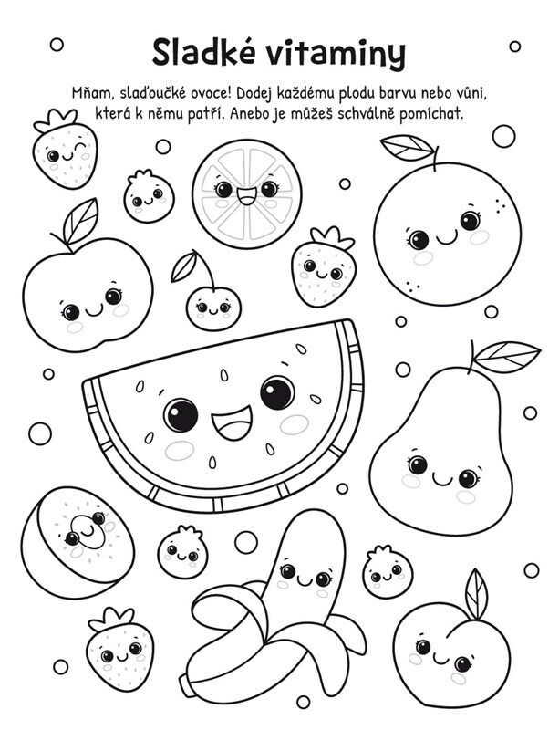 Dokážeš vybledlým sladkostem a zvířátkům vrátit ztracené barvy? Pomůžou ti v tom fixy, které navíc krásně voní, a ještě jeden speciální nanukový. Kromě nich na tebe v téhle knížce čeká 32 roztomilých obrázků k vybarvení a k tomu spousta hledání, počítání a další úkoly. Tak popadni fixy, zapoj...