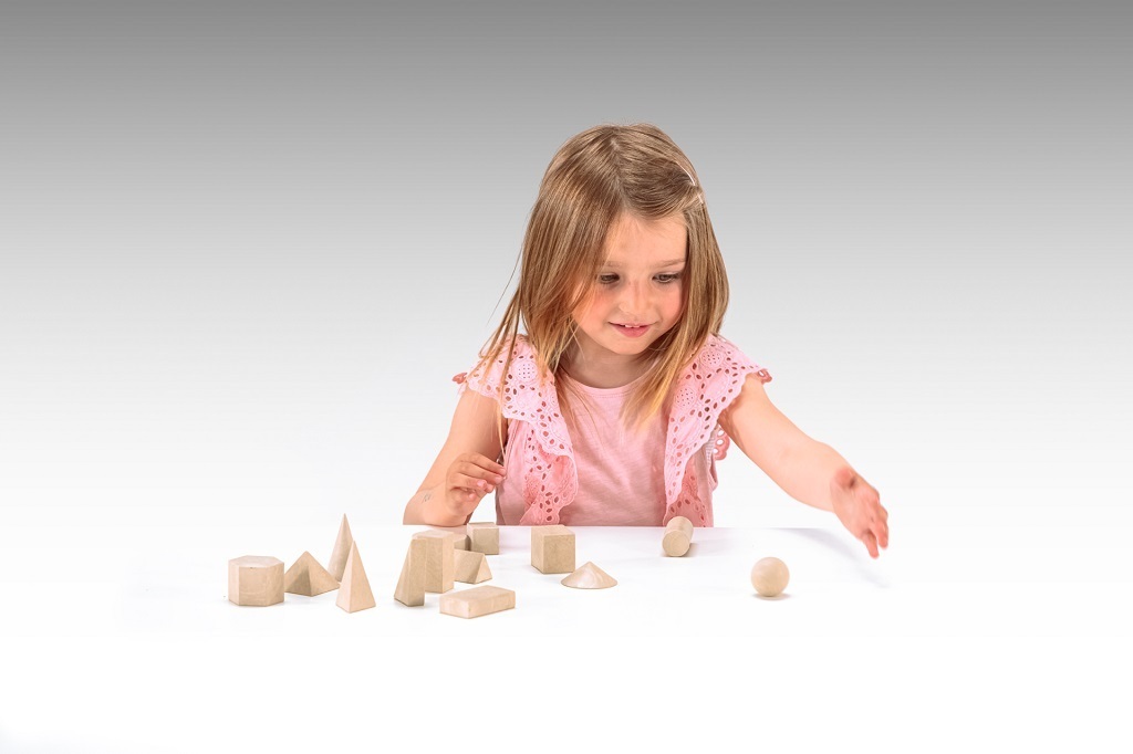 14 různých dřevěných geometrických těles, které slouží ke hraní, ale jsou vhodné také jako učební pomůcka. Rozpoznáte a pojmenujete je správně všechny? Díky těmto kostkám získá dítě pojem o slovech jako je plocha, hrana, roh, strana, úhlopříčka, úsečka, pravý úhel či kolmice. Ukažte mu, jak...