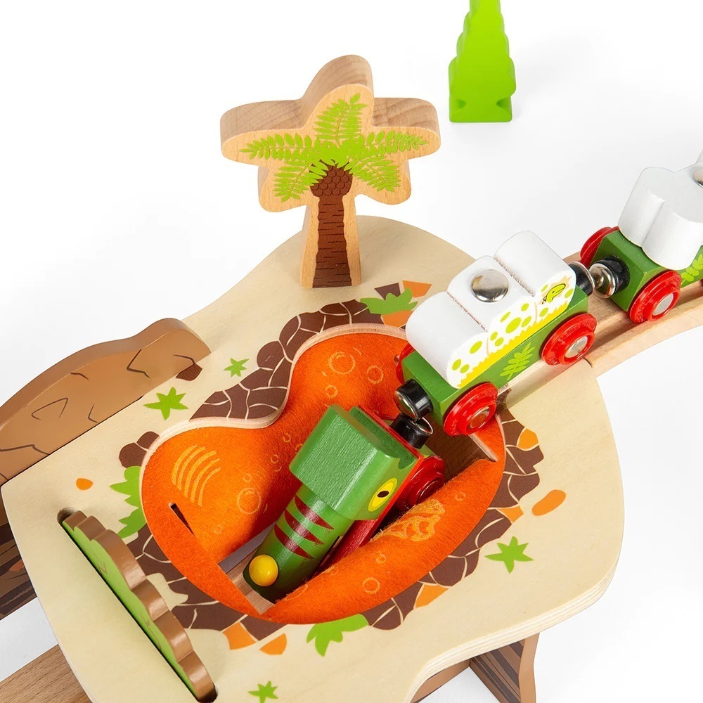 Tunel vláčkodráhy jako lávová jáma! Přežije vlak dětí tuto plstěnou lávu? Obsahuje také palmu a krásné prehistorické ilustrace. Představivá hra pomůže s rozvojem kreativity, sociálních dovedností a rozvoje řeči. Perfektně se bude hodit do dinosauří vláčkodráhy.Vláčkodráhy a jejich příslušenství...