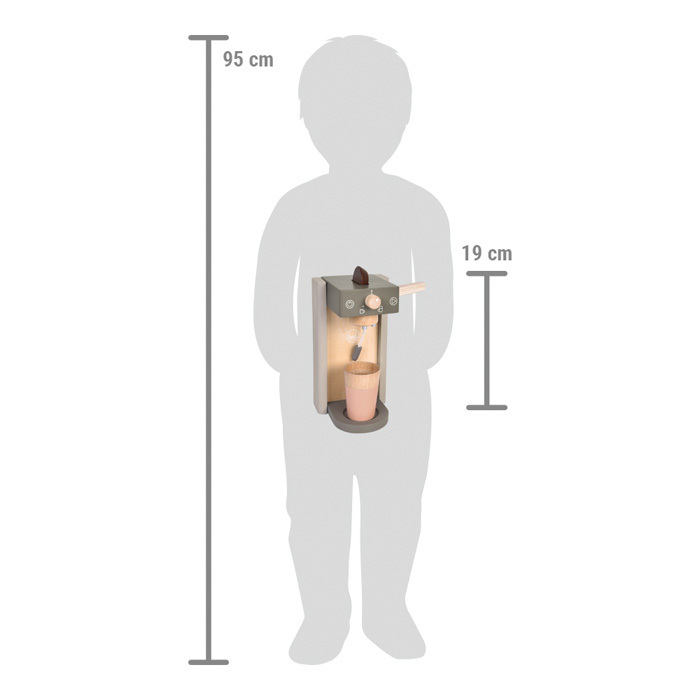 moderní kávovar s 2 kapslemikelímky-to-gorealistická hra s kapslemi a napěňovačemrobustní dřevodesignově se hodí do dětského i obývacího pokojehodí se k dalším výrobkům z produktové řady Tastypři představivé hře trénuje každodenní a sociální dovednosti