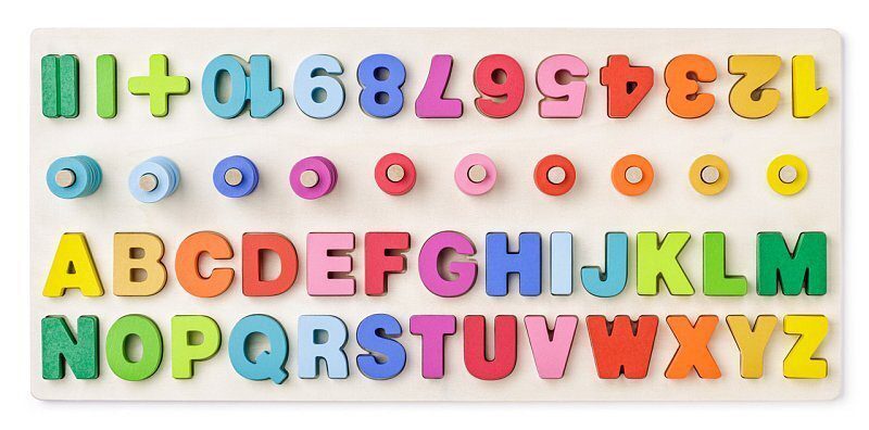 Woody Didaktická destička s počítáním, písmeny a číslicemi