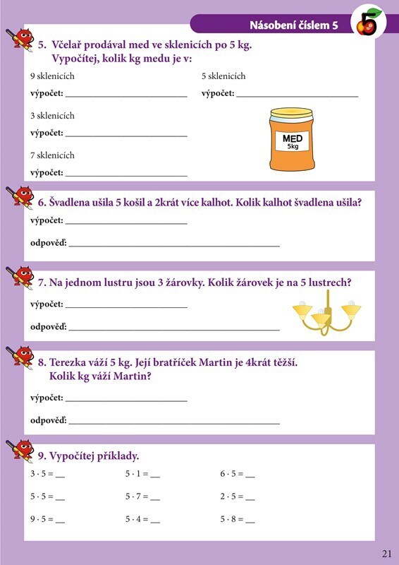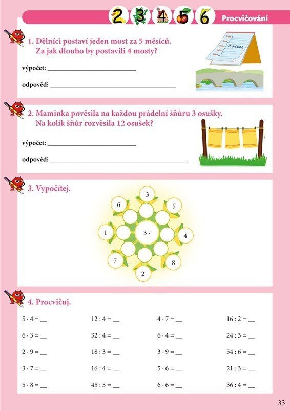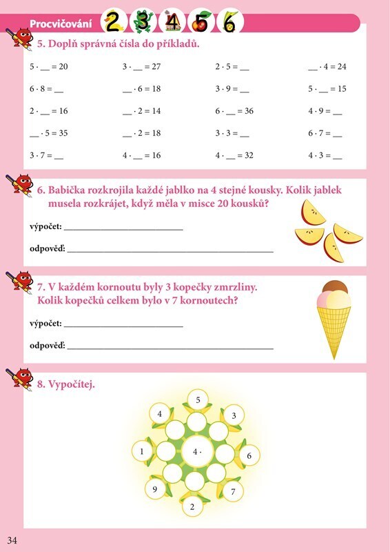Ve cvičebnici, která je určena žákům 1. stupně ZŠ, najdete spoustu různých cvičení sloužících k procvičení malé násobilky - násobení i dělení. V příloze pak jsou kouzelné karty, pomocí kterých si děti násobilku zopakují. Děti si budou karty postupně procházet a ty, které ještě neumí, odloží...