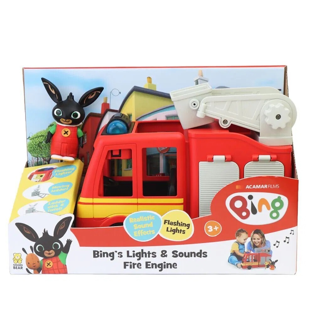Bingův hasičský vůz vydává zvuky jako pravé hasičské auto. Stejně tak i blikající modré světlo bude velmi dobře doprovázet hru na hasiče vašeho malého uličníka. V sadě s figurkou BING.