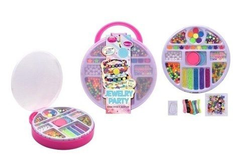 Sada korálků na výrobu vlastních náramků a náhrdelníků. Sada obsahuje korálky různých barev a tvarů, šňůrku. Praktické balení kulatého kufříku s uchem a dělenými přihrádkami na korálky. Vhodné pro děti od 6ti let.