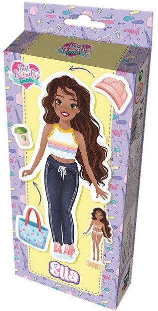 Balení obsahuje oblékací postavičku, 3 archy magnetických částí oblečení, bot a doplňků a dřevěný podstavec....