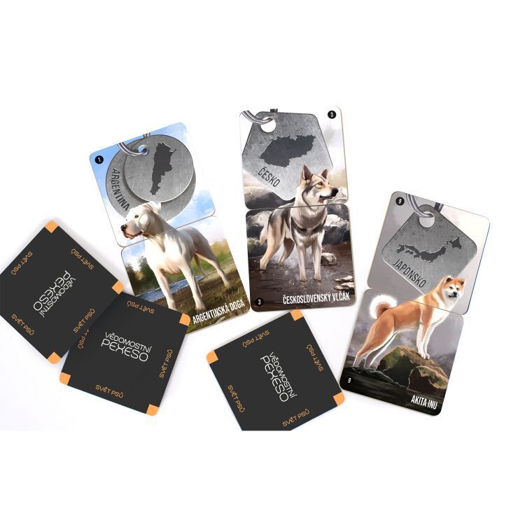 Hra vychází z klasického pexesa. Nehledají se však dva stejné obrázky, ale dvě informace, které k sobě patří. Díky vědomostnímu pexesu si můžete oživit znalosti ze světa psů. Hra obsahuje: 48 kartiček (tj. 24 párů).